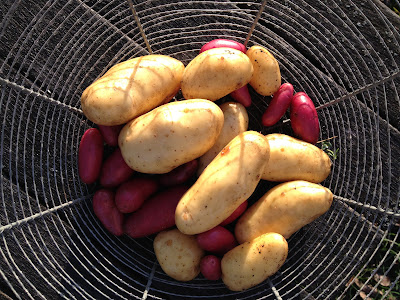 Som lön för min grävning hittar jag söta rosa franska potatisar och stora härliga för bakning.